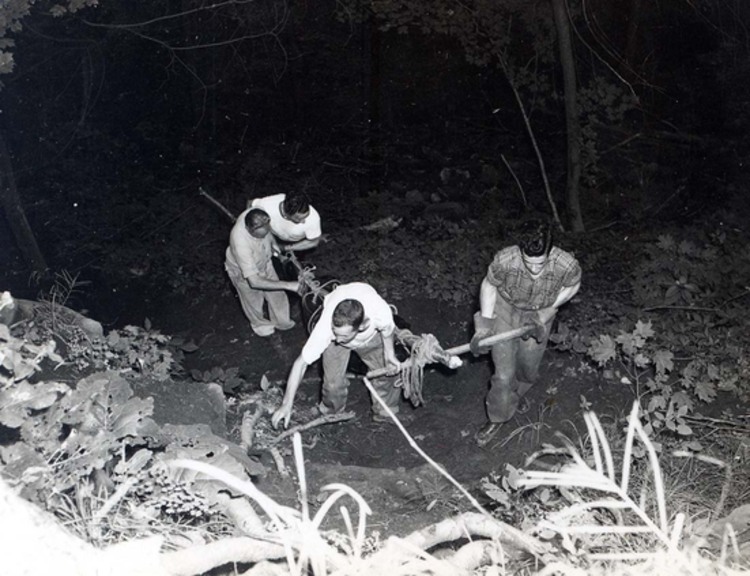 Bringing the "Thing" up the bank after William "Red" Hill Junior's Death on August 5, 1951