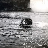 - William "Red" Hill Junior in the "Thing" in the lower Niagara River with the Falls in the background.