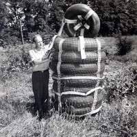 - William "Red" Hill Junior Standing by the "Thing" in which he died after going over the Horseshoe Falls on August 5, 1951