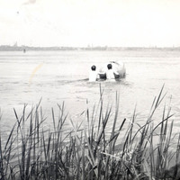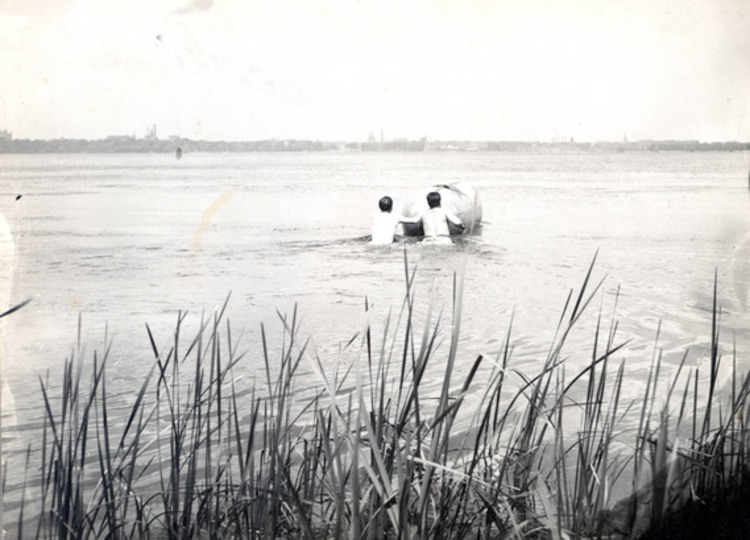 Pushing William "Red" Hill Senior's steel barrel out into the Niagara River above the Falls