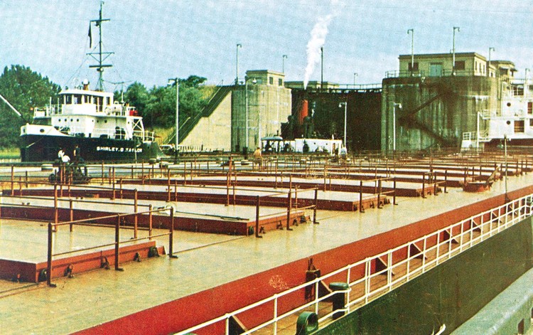 - en-CA On back of postcard 'Thorold Twin Flight Locks. Lake Ontario bound boat in background, waiting to be lowered. Lake Erie bound boat in foreground is partially raised to middle level of the locks.
