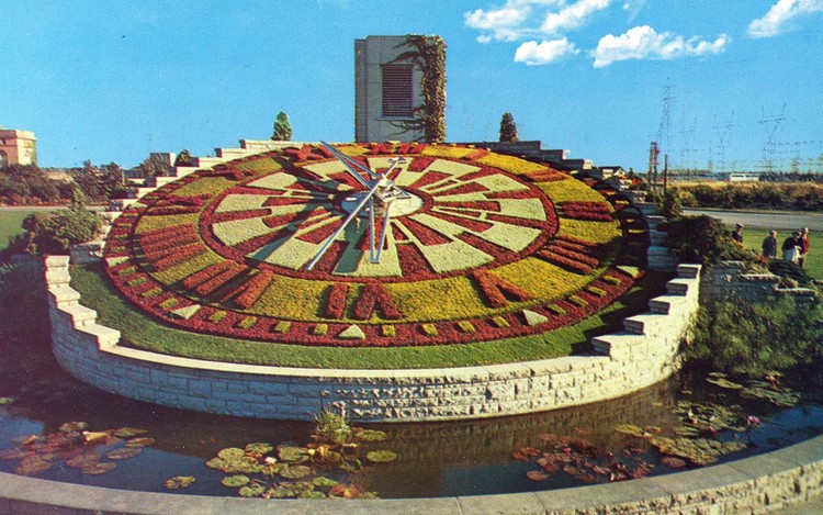 - en-CA On back of postcard 'Ontario Hydro's Floral Clock. Situated between Queenston and Niagara Falls, Canada. Approximately 24,000 colourful plants make up the design of the clocks face, which covers an area of 1,130 square feet.