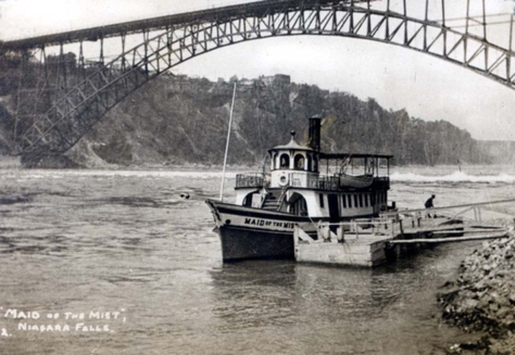 - en-CA Maid of the Mist boat under the Honeymoon bridge
