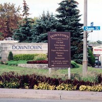 - en-CA Part of the 2004 Snapshot of Niagara Project. Sign for Downtown Niagara Falls at the corner of River Rd. and Queen St.