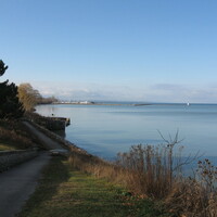 - en-CA Lake Ontario as seen from the Waterfront Trail at Geneva Street, with the Dalhousie Yacht Club and Port Dalhousie inner range lightouse in the background.