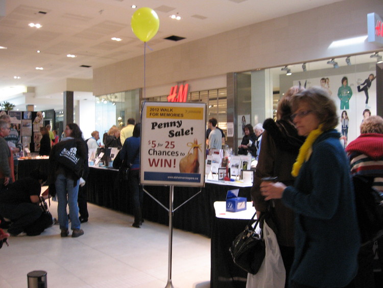 - en-CA Penny sale table at the Alzheimer Society of Niagara Region's "Walk for Memories" at the Pen Centre Mall.