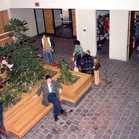 - en-CA Interior picture of patrons in the lobby of the Niagara Falls Public Library on Victoria Avenue.