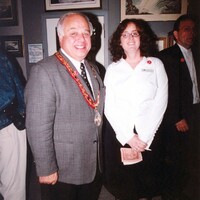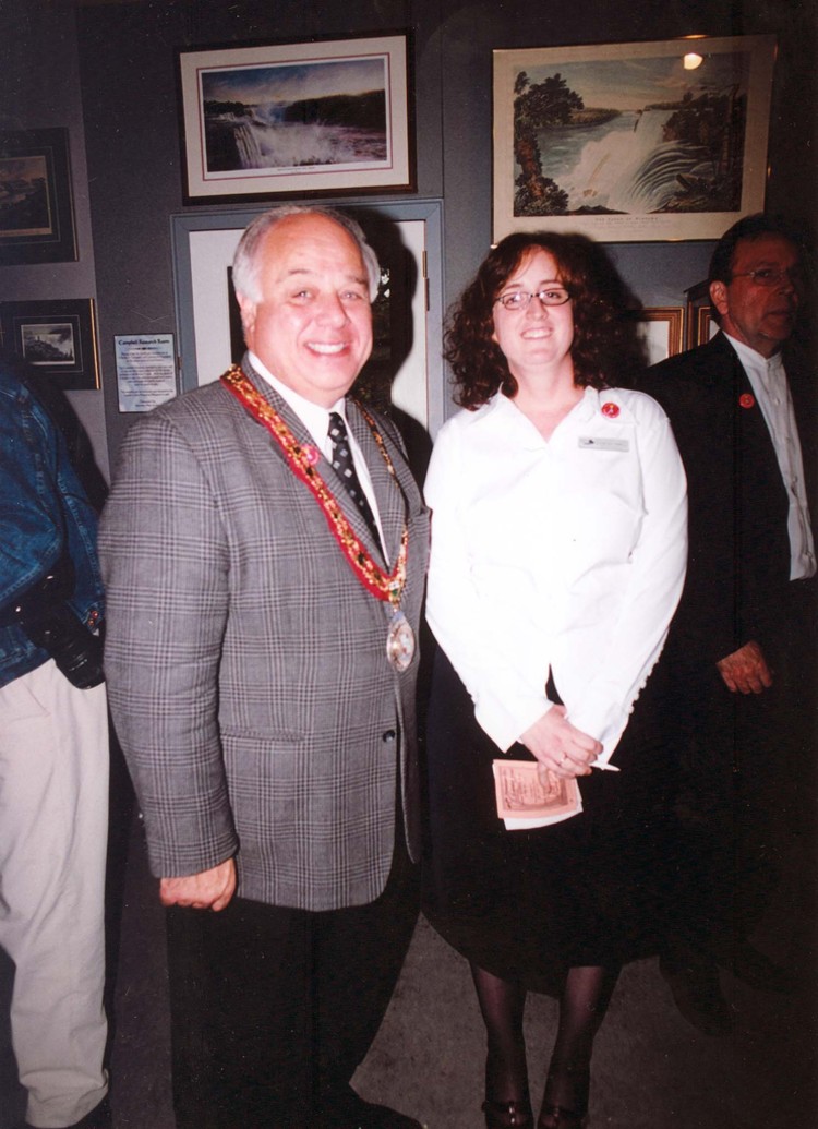 - en-CA Kathy Powell and Mayor Ted Salci at the Launch of Collector Cards, a fundraiser for the Lundy's Lane Historical Museum