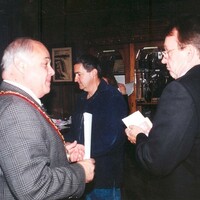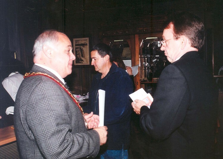 - en-CA Mayor Ted Salci and unidentified guest at the Launch of Collector Cards, a fundraiser for the Lundy's Lane Historical Museum