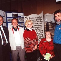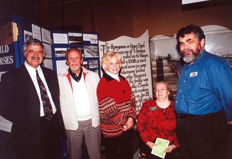 - en-CA Joe Longo (left), Shirley Fisher and husband (middle), Karen, Fraser (next), and Andrew Porteus (right) at the Launch of Collector Cards, a fundraiser for the Lundy's Lane Historical Museum