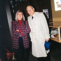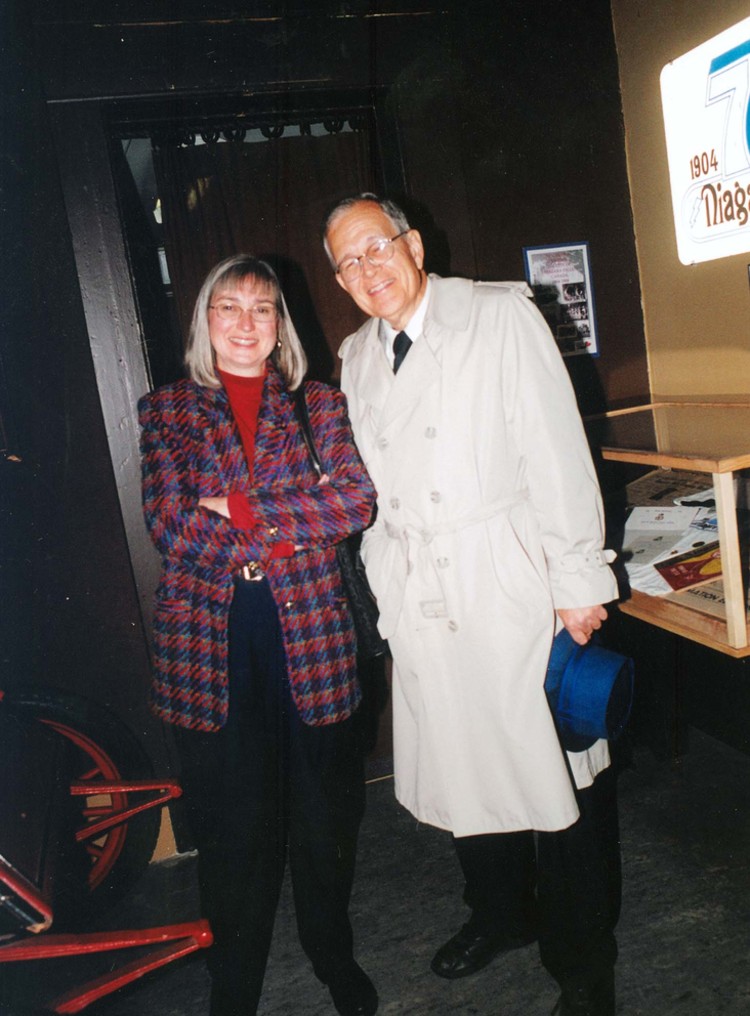 - en-CA April Petrie (left), and Sherman Zavitz (right) at the Launch of Collector Cards, a fundraiser for the Lundy's Lane Historical Museum