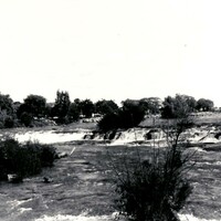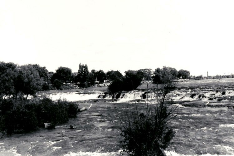 - en-CA Cascades in the Upper Niagara River at Goat Island, with the American shoreline in the backround