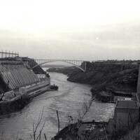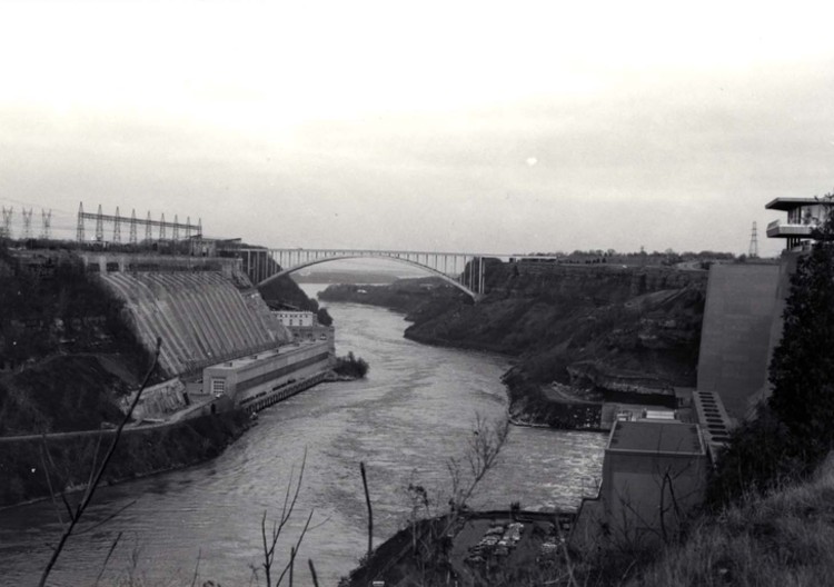 - en-CA View of the Queenston-Lewiston Arch bridge over the Lower Niagara River and the Robert Moses and Sir Adam Beck Power Stations