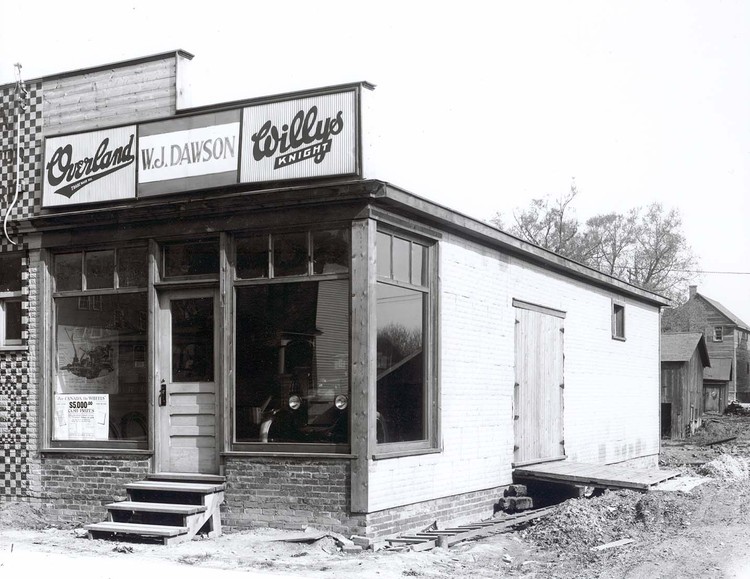 - en-CA Niagara Falls store. Sign on top of store reads Overland; W.J. Dawson; Willys Knight