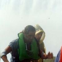 - Steve Trotter being rescued after he and Lori Martin went over the Horseshoe Falls in a barrel.