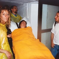 - Lori Martin being rescued after she and Steve Trotter went over the Horseshoe Falls in a barrel.