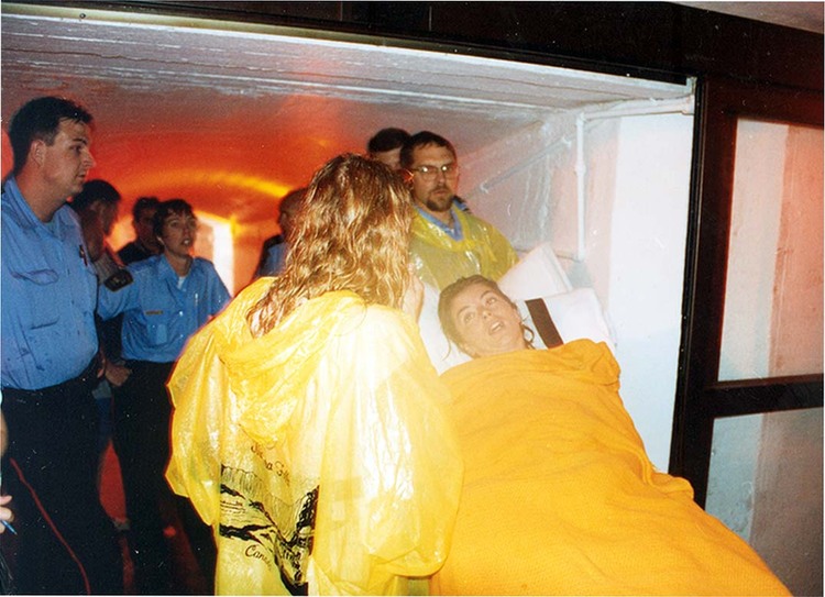 - Lori Martin being rescued after she and Steve Trotter went over the Horseshoe Falls in a barrel.