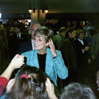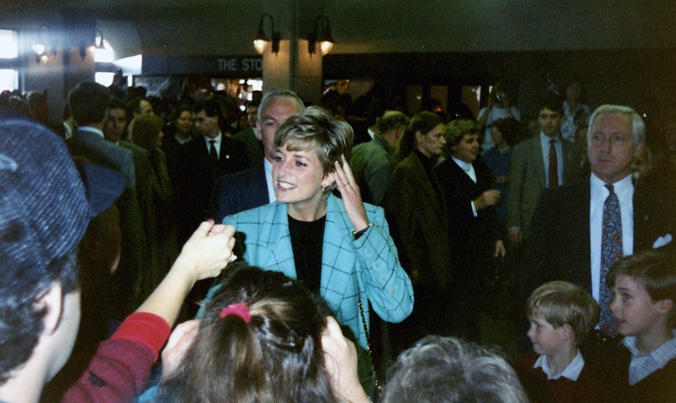 - en-CA Diana Princess of Wales, Prince Wiiliam (9 years) and Prince Harry (7 years) in the foyer of Table Rock House greeting the crowd