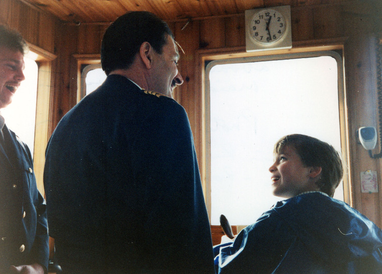 - en-CA Prince William (9 years), standing beside the Captain (Richard Schuyler) and First Mate (Rod MacDonald) at the wheel of the Maid of the Mist IV