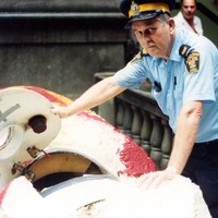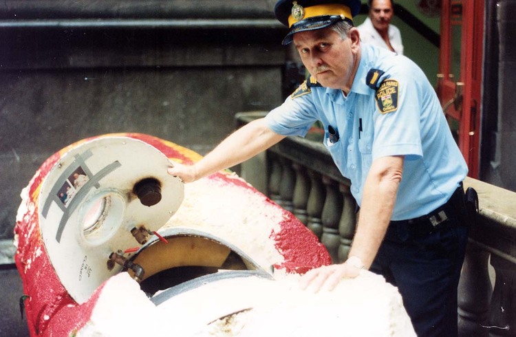 Barrel used by John "David" Munday in his aborted attempt to go over the Horseshoe Falls in 1990 being confiscated by police