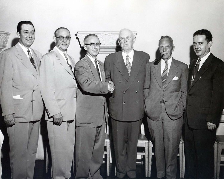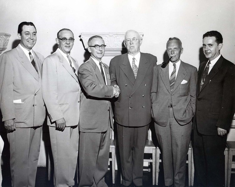 - en-CA The annual CLA Conference was held in Niagara Falls June 11-14 1956. Picture depicts right to left: Arthur Jolley, Mayor Hawkins, M.J. Quinlan, Hon. W.D. Dunlop, Minister of Education, A.M. Mowal, and Willard Ireland
