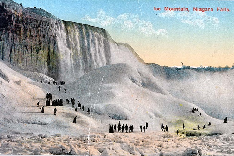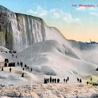 - en-CA Postcard showing people walking on the ice mountain below the falls