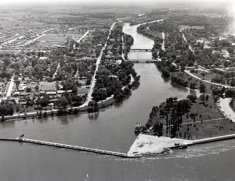 - en-CA Aerial view of Chippawa depicting the Niagara River, Chippawa Creek and the Niagara parkway