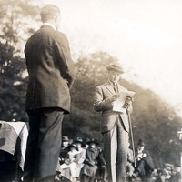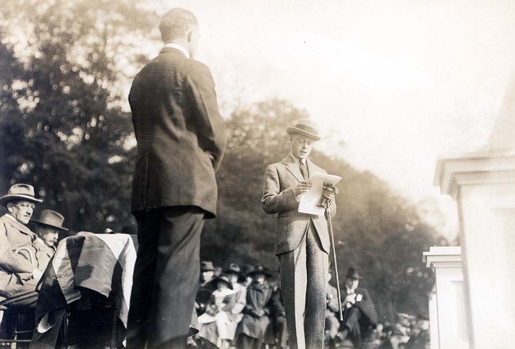 en-CA Prince Edward, Prince of Wales (future Edward VIII and Duke of Windsor) on royal tour of Canada in 1919 visits Niagara Falls. Prince Edward is giving a speech.