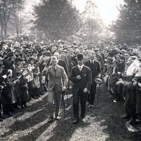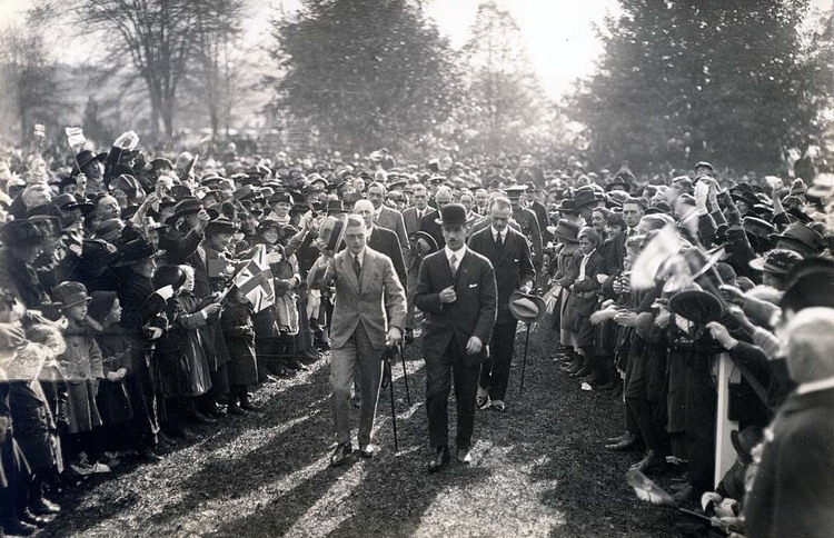 - en-CA Prince Edward, Prince of Wales (future Edward VIII and Duke of Windsor) on royal tour of Canada in 1919 visits Niagara Falls. Prince Edward walking through crowds (in front on left side).
