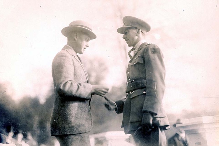 - en-CA Prince Edward, Prince of Wales (future Edward VIII and Duke of Windsor) on royal tour of Canada in 1919 visits Niagara Falls. Prince Edward shaking hands with a soldier.