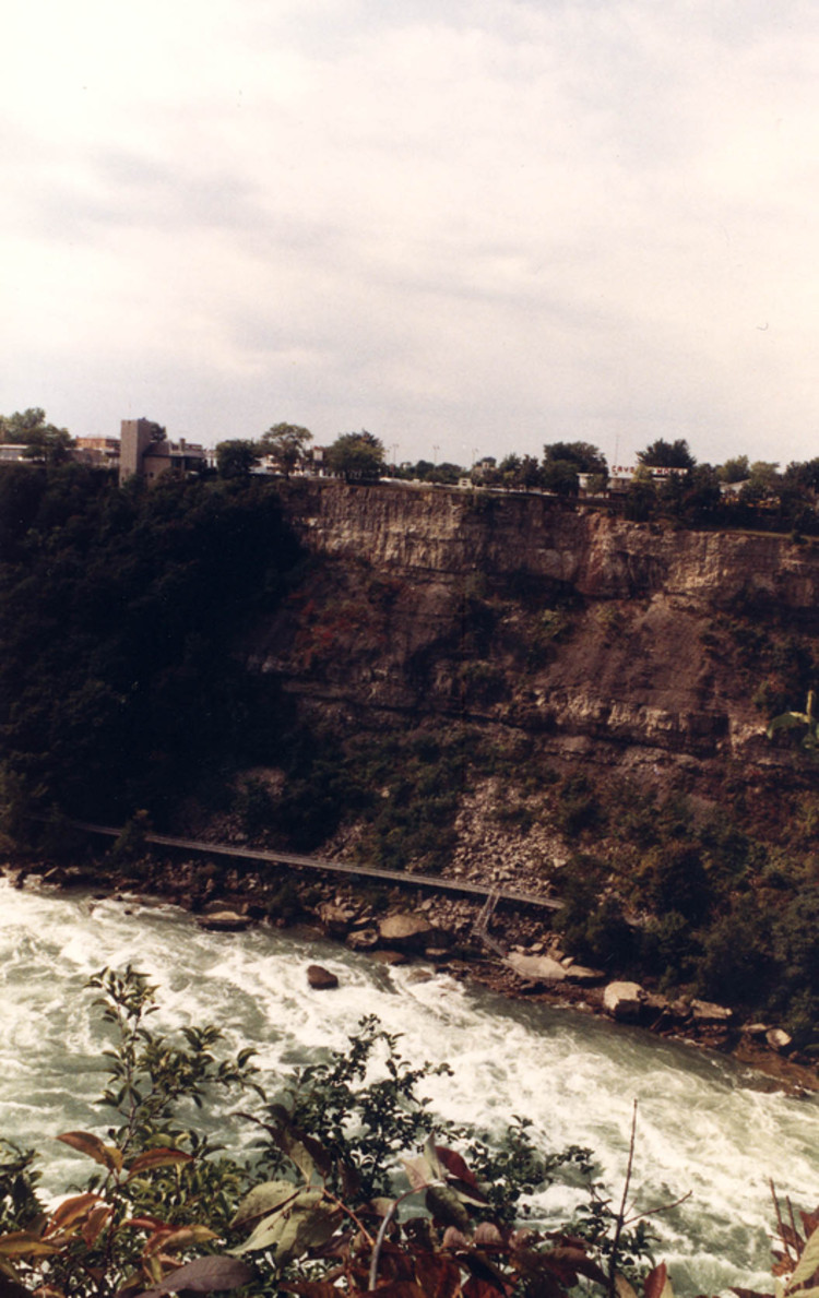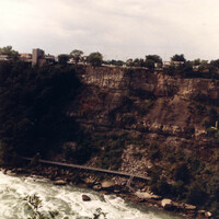 - en-CA Gorge boardwalk on the Canadian side and helicopter pad on the bottom right side by the river's edge.