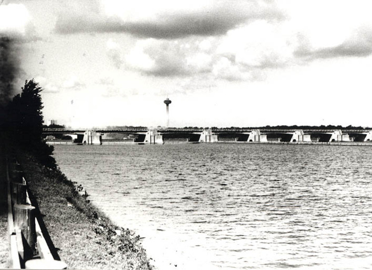 - en-CA The Upper Niagara River depicting the International Control dam and the Skylon Tower