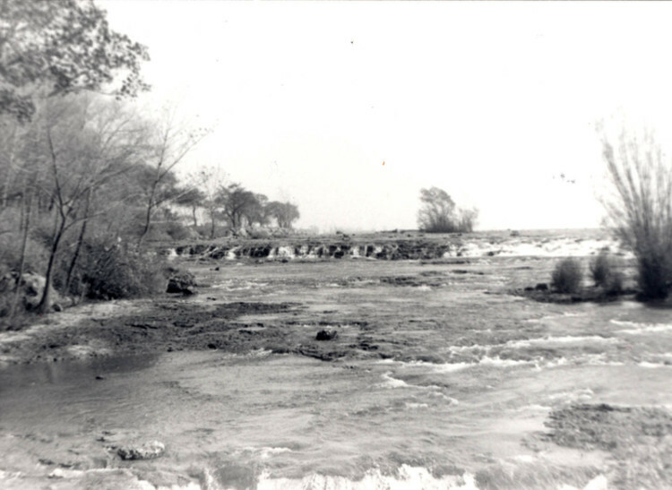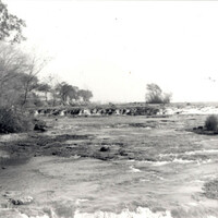 - en-CA Dried off cascade, channel between Three Sisters Islands