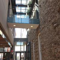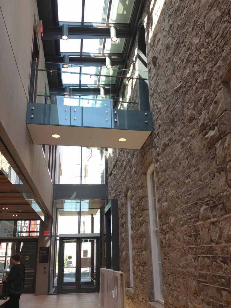 - Interior view of the newly renovated museum ; the main lobby area with skylight overhead and passway over the lobby on the second floor ; Suzanne Moase Curator in the background bottom left ;