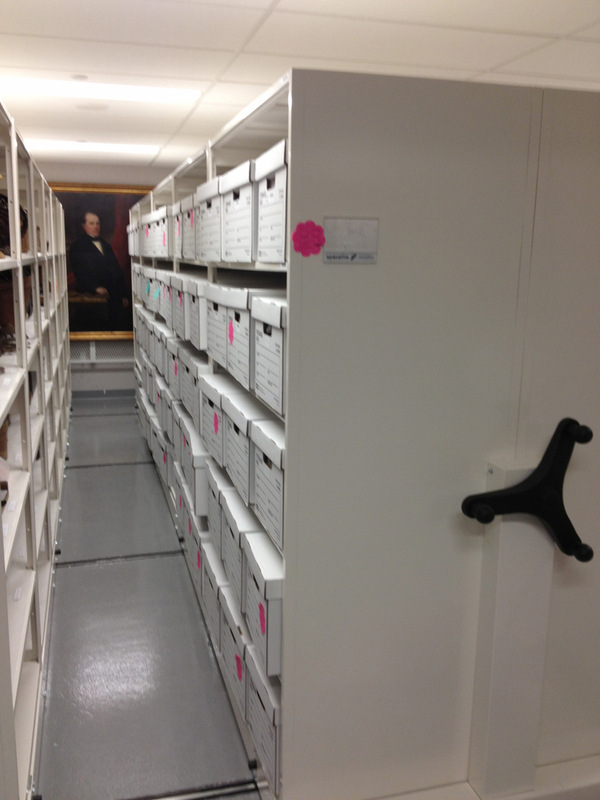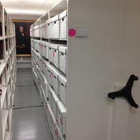 - Interior view of the newly renovated museum ; artifacts storage area ; artworks stored on back wall ;
