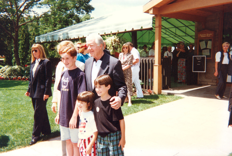 - en-CA Former U.S. President Jimmy Carter with his wife Rosalynn with three children in front of the Queenston Heights Restaurant