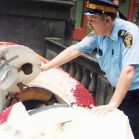 - en-CA On October 5 1985 John "David" Munday became the 10th person to go over the Canadian Horseshoe Falls in a barrel. He attempted the stunt again on July 15, 1990 but the barrel became caught on rocks at the brink of the Horseshoe Falls and he had to be rescued by a crane. Police officer is Wes Hill.