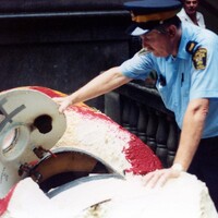 Barrel used by John "David" Munday in his aborted attempt to go over the Horseshoe Falls in 1990 being confiscated by police