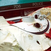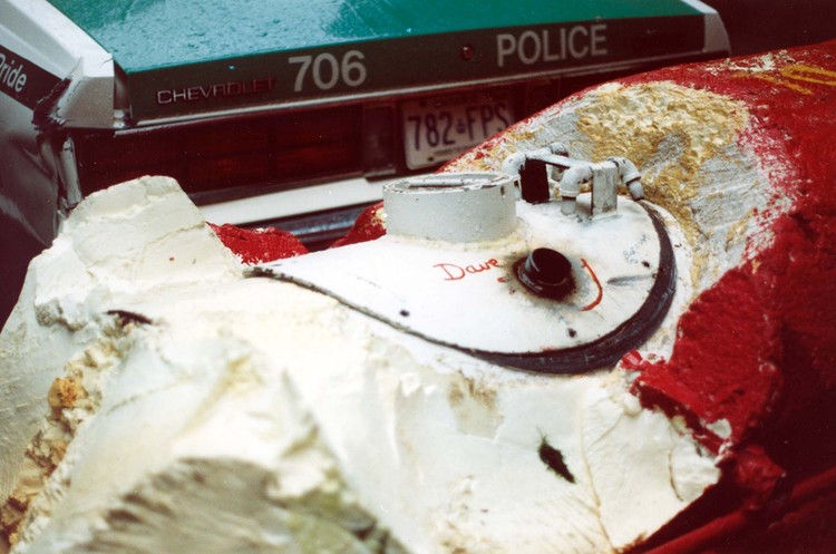 Barrel used by John "David" Munday in his aborted attempt to go over the Horseshoe Falls in 1990 being confiscated by police