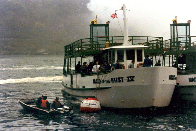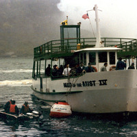 Maid of Mist retrieving barrel used by John "David" Munday to go over the Horseshoe Falls 1993