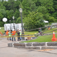 - en-CA Crew setting up the tightrope on the Canadian side of the border by Table Rock.