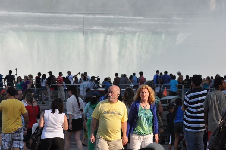 Nik Wallenda's Tightrope Walk Across the Horseshoe Falls at Niagara - Crowd Scene
