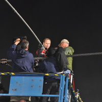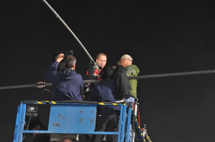- en-CA Nik Wallenda and his crew getting ready for him to begin his tightrope walk.
