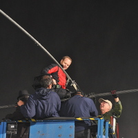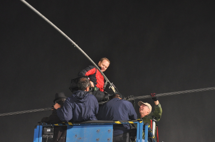 - en-CA Nik Wallenda and his crew getting ready for him to begin his tightrope walk.