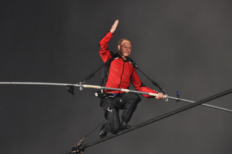 Nik Wallenda's Tightrope Walk Across the Horseshoe Falls at Niagara - Wallenda on Tightrope