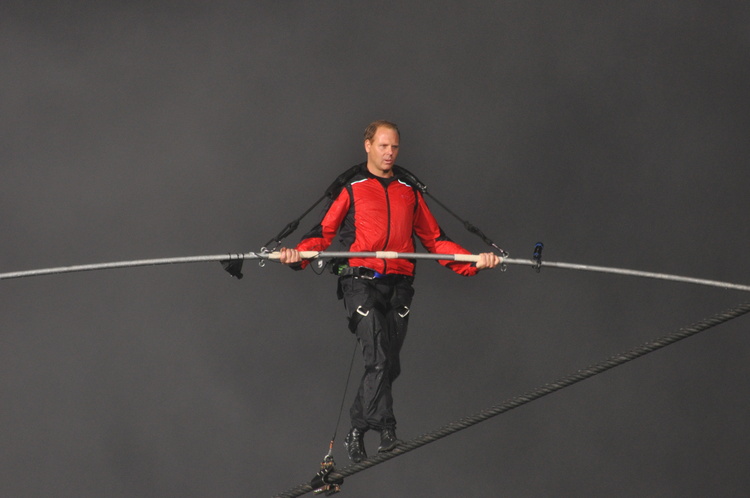 - Nik Wallenda's Tightrope Walk Across the Horseshoe Falls at Niagara - Wallenda on Tightrope