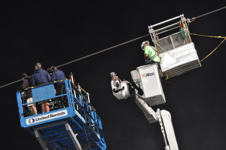 Nik Wallenda's Tightrope Walk Across the Horseshoe Falls at Niagara - Crew Waits for Wallenda to Finish Walk