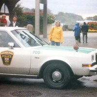 - John "David" Munday in a police car outside of Table Rock House after going over the Horseshoe Falls in a barrel