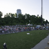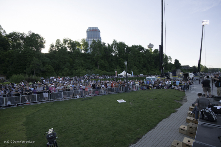 - Crowds in Queen Victoria Park awaiting the walk ; TV and other media setting up ; Niagara Fallsview Casino in centre background ; Skylon Tower extreme background right ;