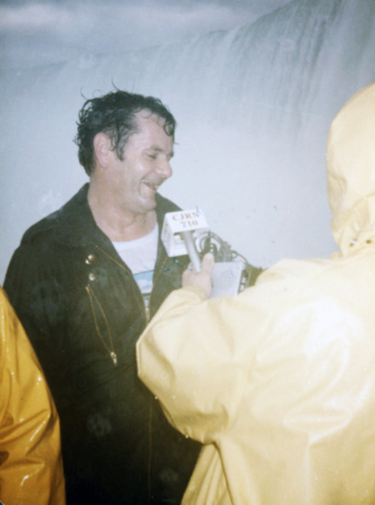 - John "David" Munday being interviewed after going over the Horseshoe Falls in a barrel